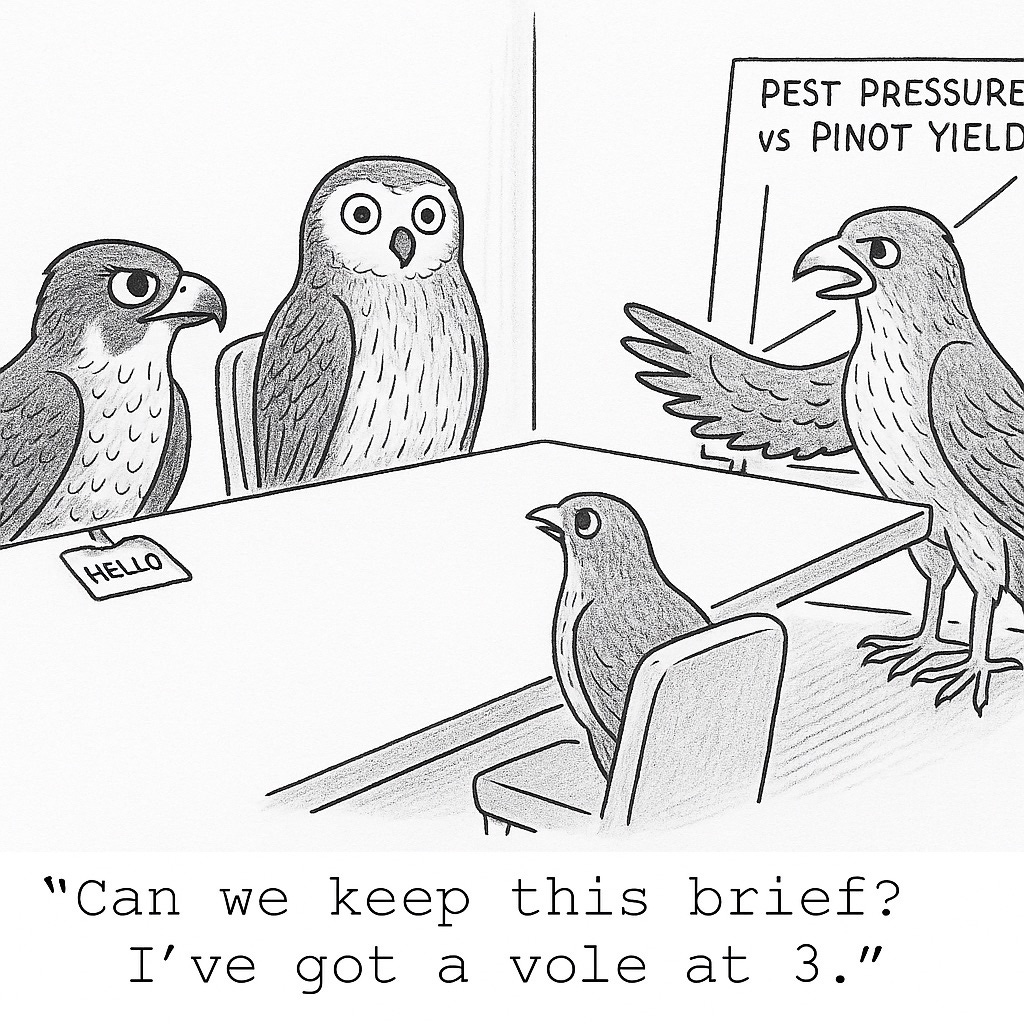 “While it might seem counterintuitive, birds in a vineyard are actually beneficial as they help remove harmful insects,” she said. “We only disrupt this natural process when absolutely necessary to prevent economic losses.”