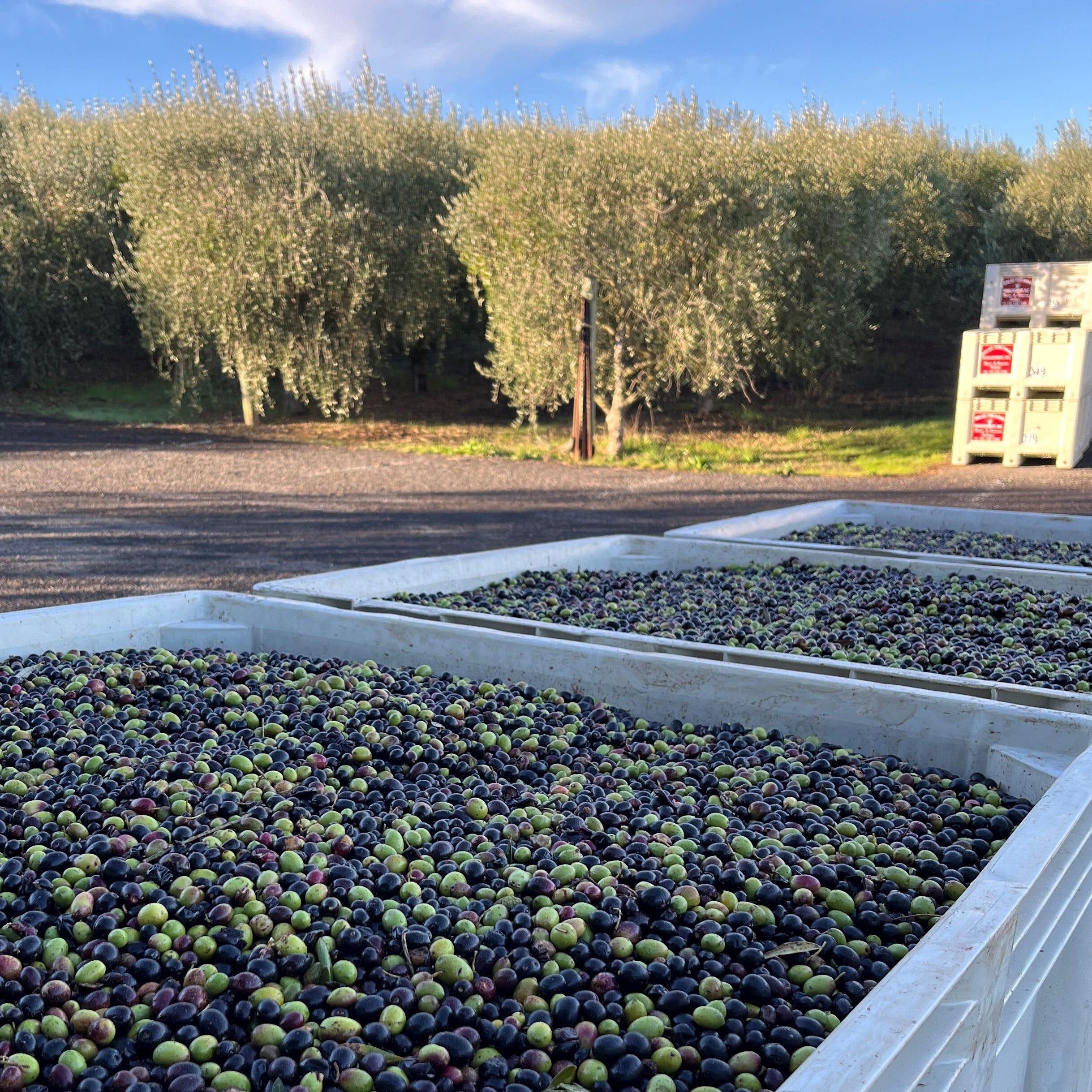 The olive trees were planted more than 20 years ago, with the first viable harvest arriving in 2006. According to Erin O’Brien, Olive Hill’s director of operations, the estate grows “technically six varieties of olives,” though five are the focus of oil production. Harvest typically takes place about two months after the wine grapes are brought in, and all olive colors and ripeness levels are included to “provide a balance of flavors.”