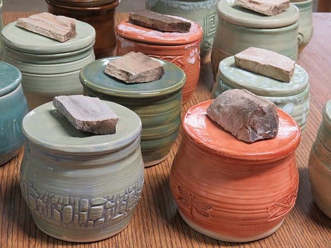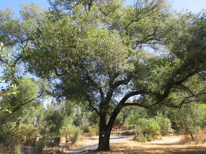 Majestic valley oaks, sometimes called white oaks, are sentinels at the entrance to the park, shading a historic building and its notable gift shop. That shop holds a treasure-trove of sparkling specimens of the forest's petrified wood, gems and minerals from around the world, nature books and more. I was there to drop off some of my stoneware pottery jars with petrified wood handles that owner Barbara Angell had purchased for the gift shop. Angell and her sister and co-owner, Janet, who has now passed, have purchased my pottery, books and photo note cards for years. As we have written about in Napa Valley Features previously, the forest is up for sale, and Angell hopes the forest will end up in the hands of stewards who will continue to care for the lands and allow walks and tours here.