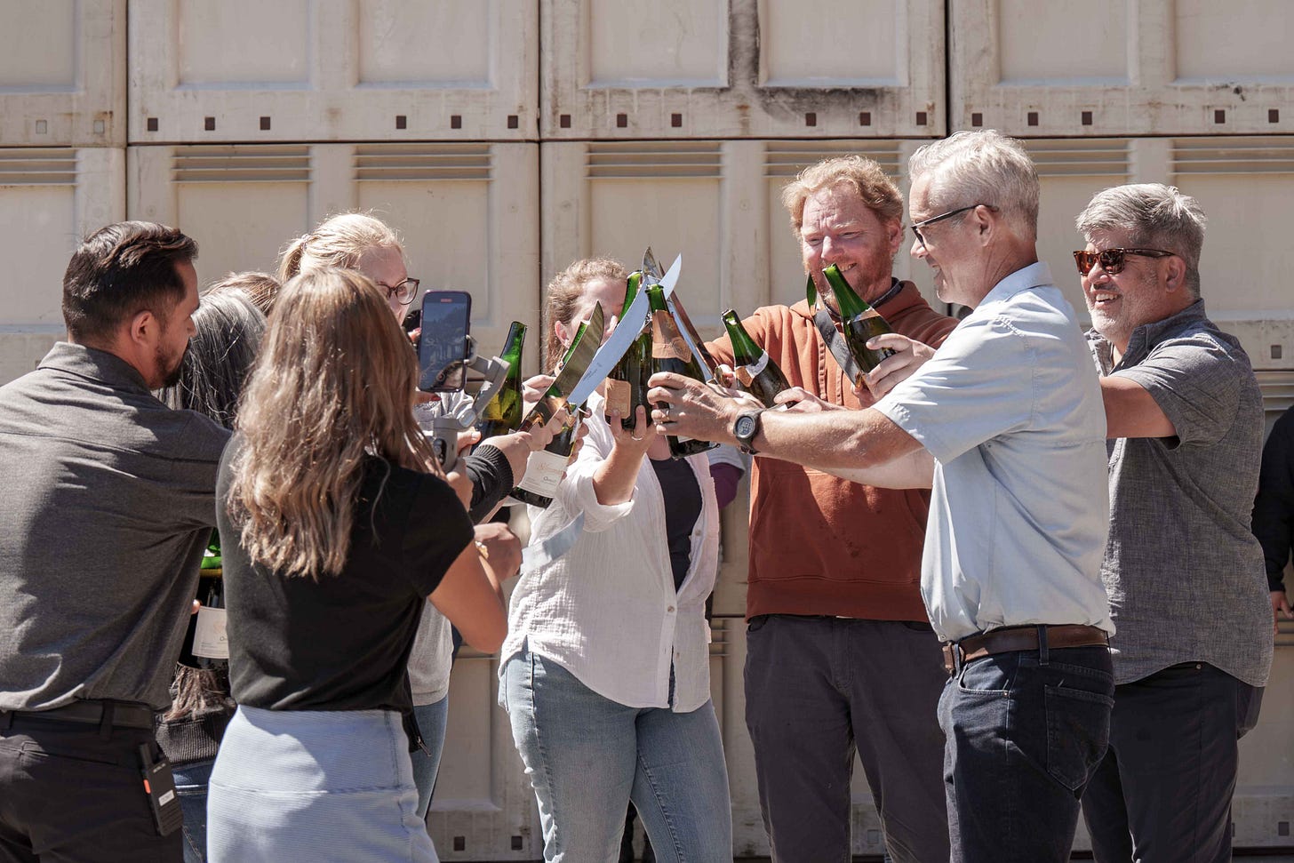 The ceremony wasn’t the valley’s first fruit of 2025 — Mathiasson and a handful of others had already filled their bins. But this was different. This was ritual. This was sabering.
