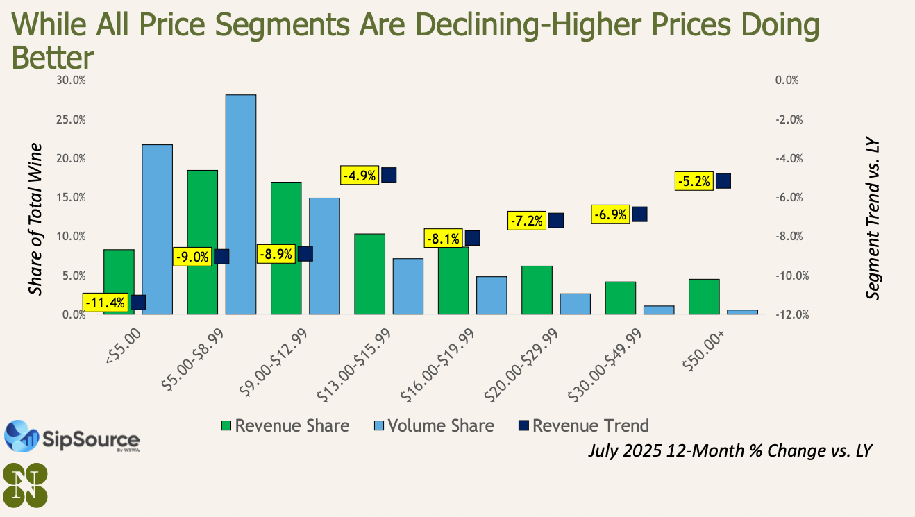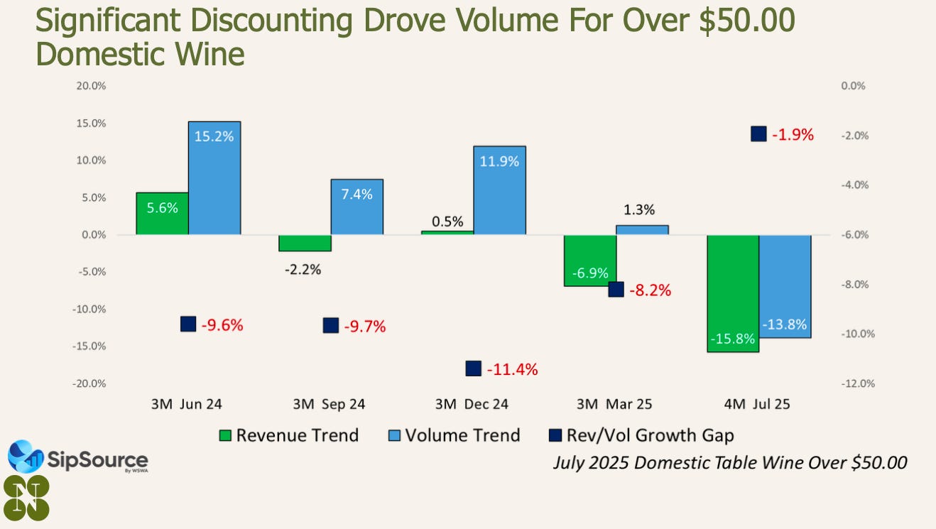 Even the premium tier is no longer insulated. Bottles priced above $50 were essentially flat last year, and sales of $100-and-above wines — Napa’s strongest category — fell 3% for the first time in more than a decade.