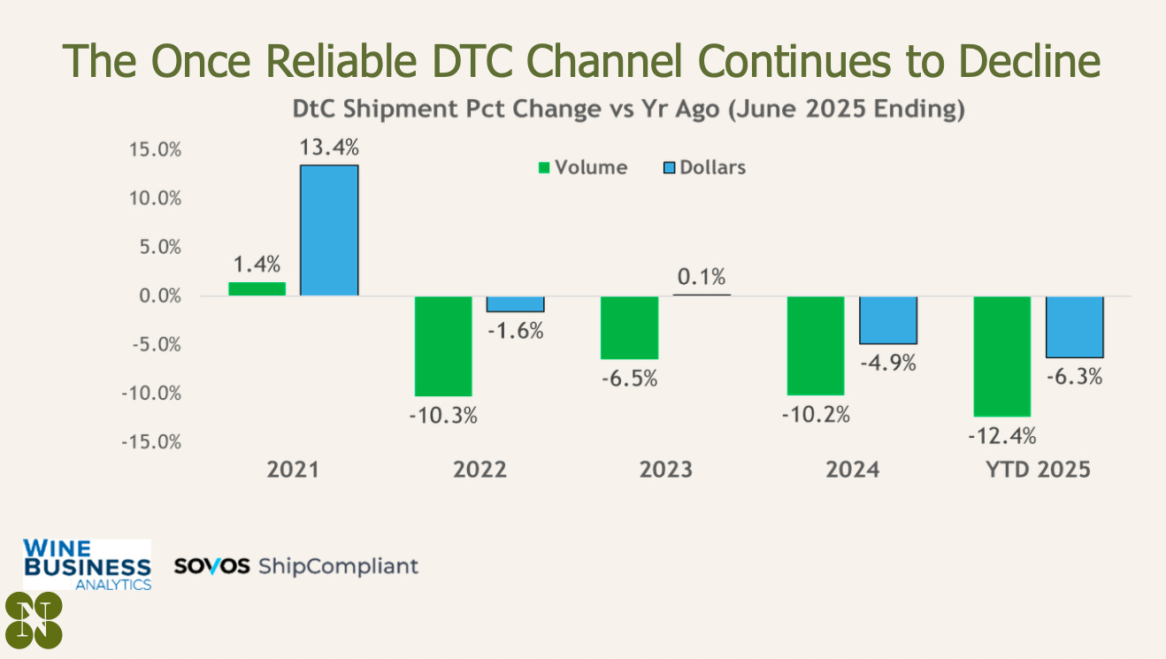 Direct-to-consumer shipments, once a lifeline for Napa producers, have declined for three straight years.