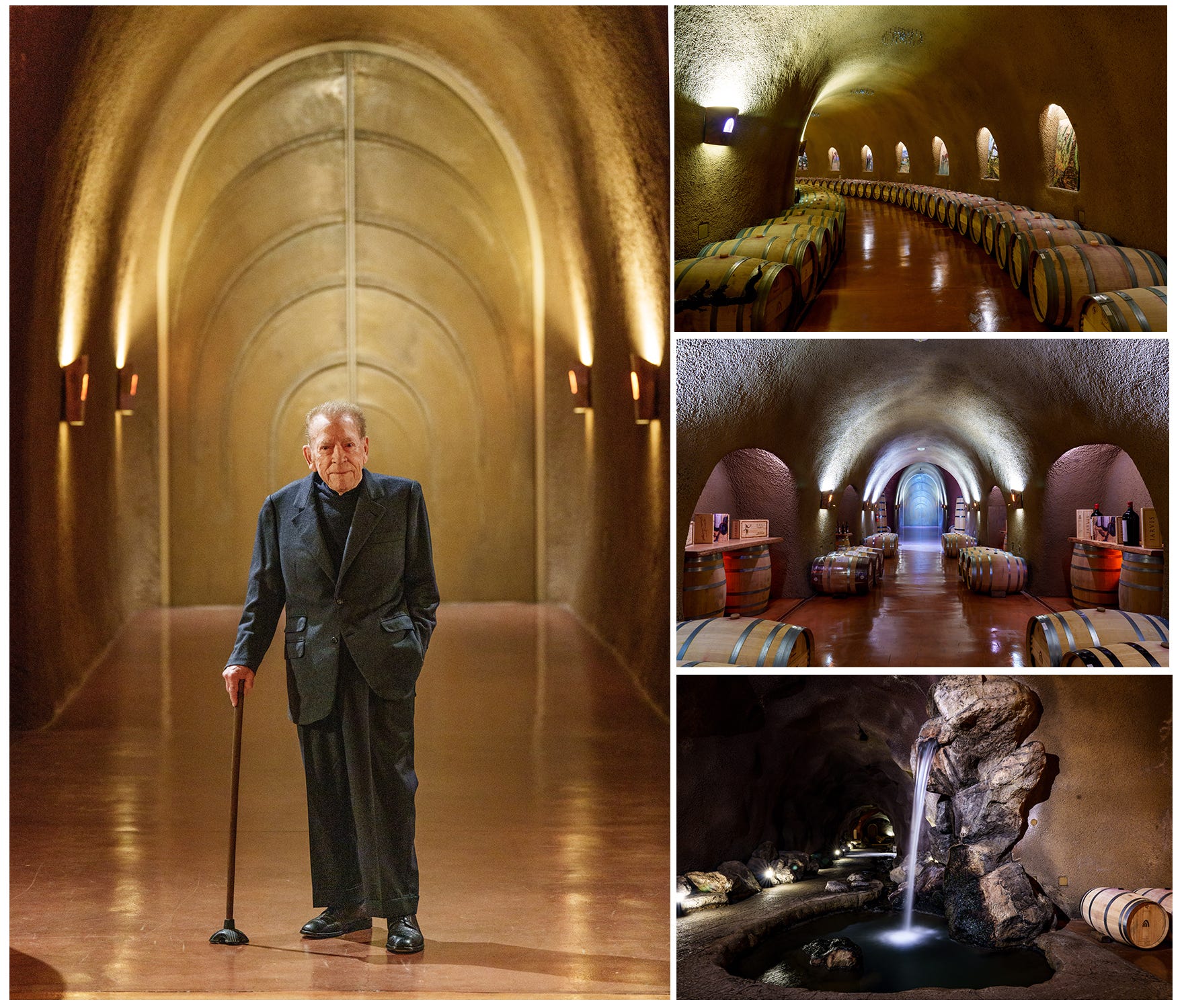 The winery was constructed entirely underground — a vast, 45,000-square-foot solar-powered system of caves with fermentation tanks, labs, tasting rooms and a natural waterfall echoing in the deepest chamber. All wine production occurred below the surface.